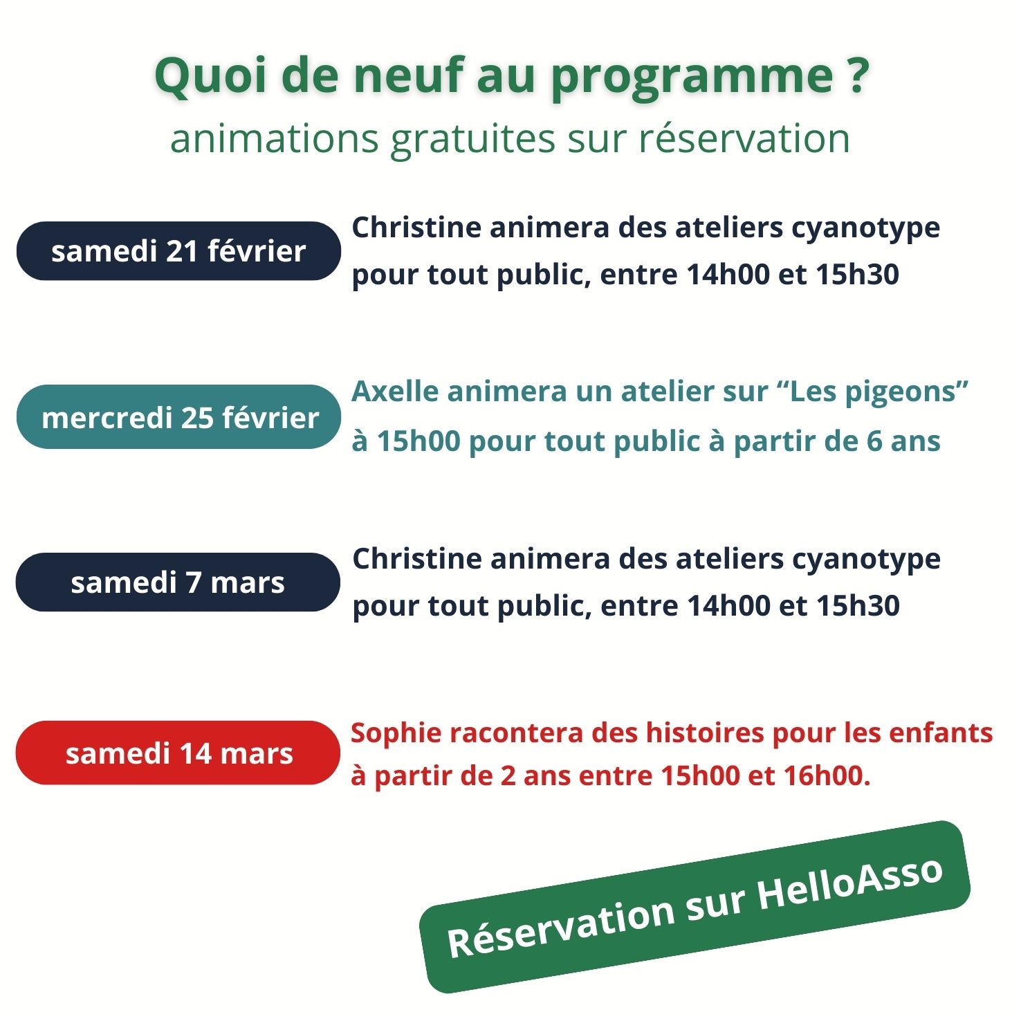 animations gratuites les mercredis et samedis de décembre :